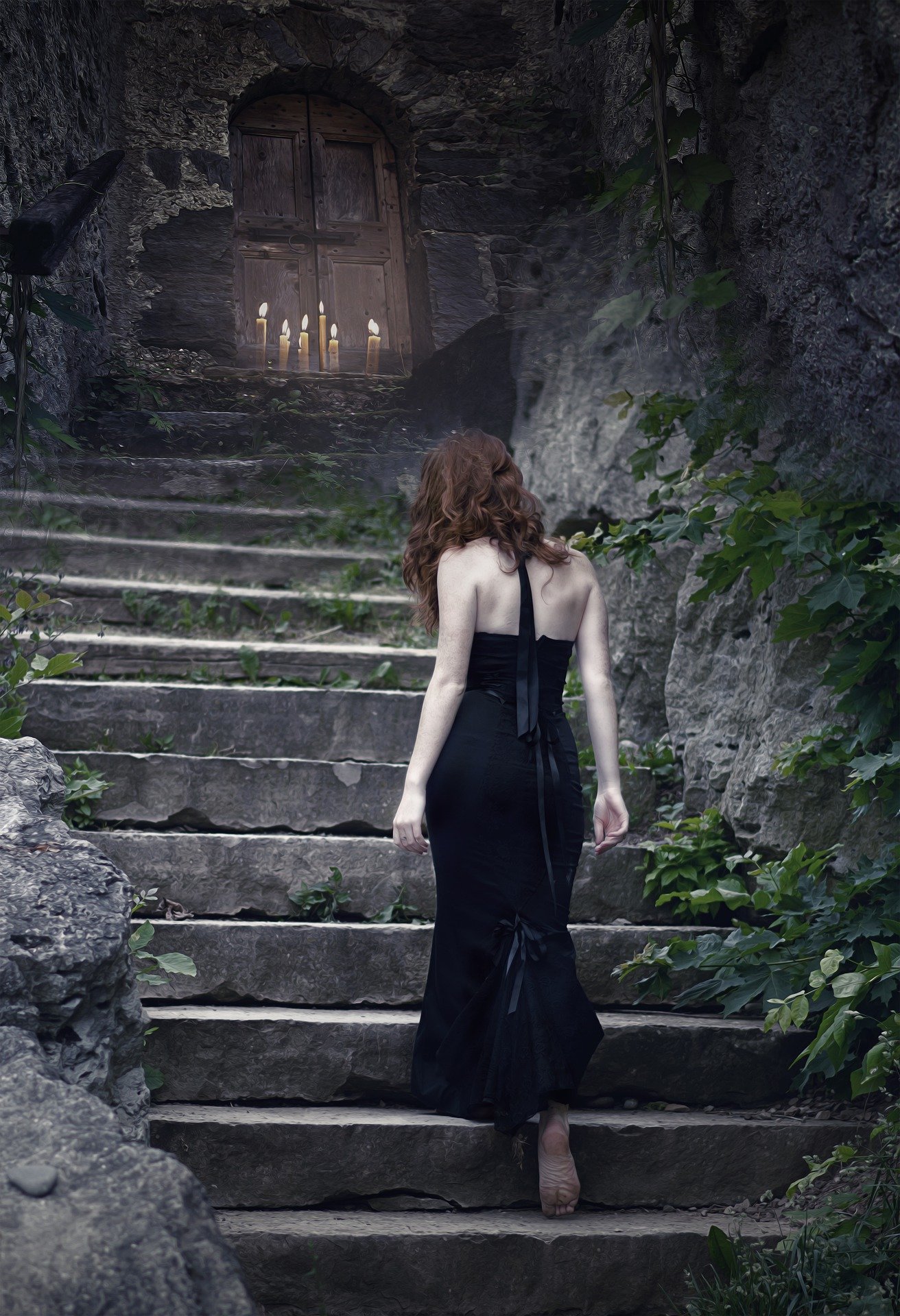 White candles flicker, beckoning