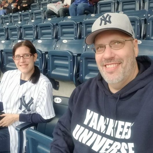 Alyssa and Frank at Yankee Stadium. They also made it onto the big screen!Frank was a huge Yankees fan and when Alyssa was going through a rough time with her health, he asked me if I thought it would be okay to ask her to go to a game with him. Of course, I said yes! Not only did he take her to the game, but they toured Monument Park, with Alyssa (as she told me) amazed by Frank’s knowledge of the Yankees legends. On Sunday, March 8, we will honor Frank by wearing our Yankees shirts to his memorial service at Marantha..